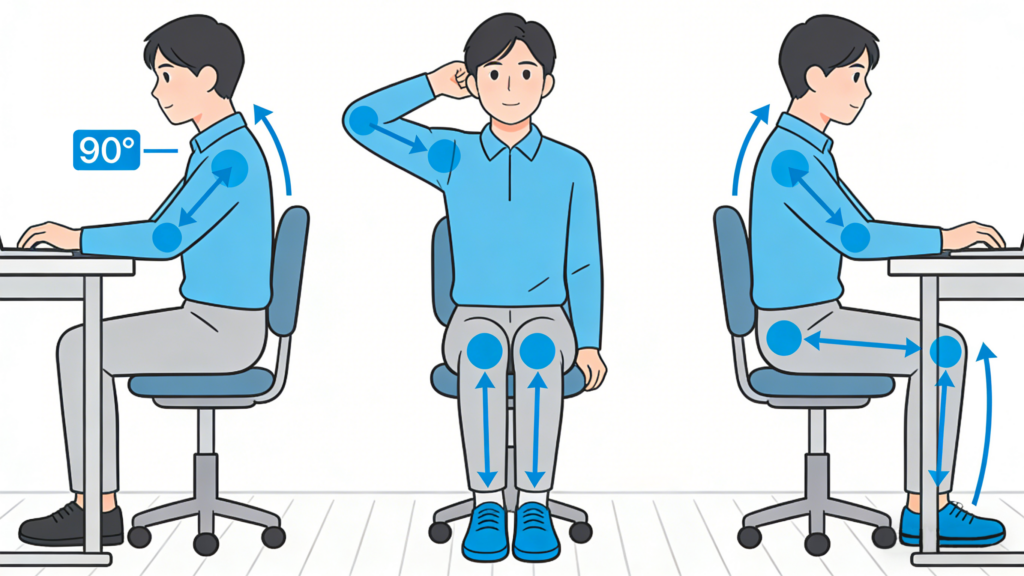 理想的なデスクワーク姿勢:3つの「90度」ルール